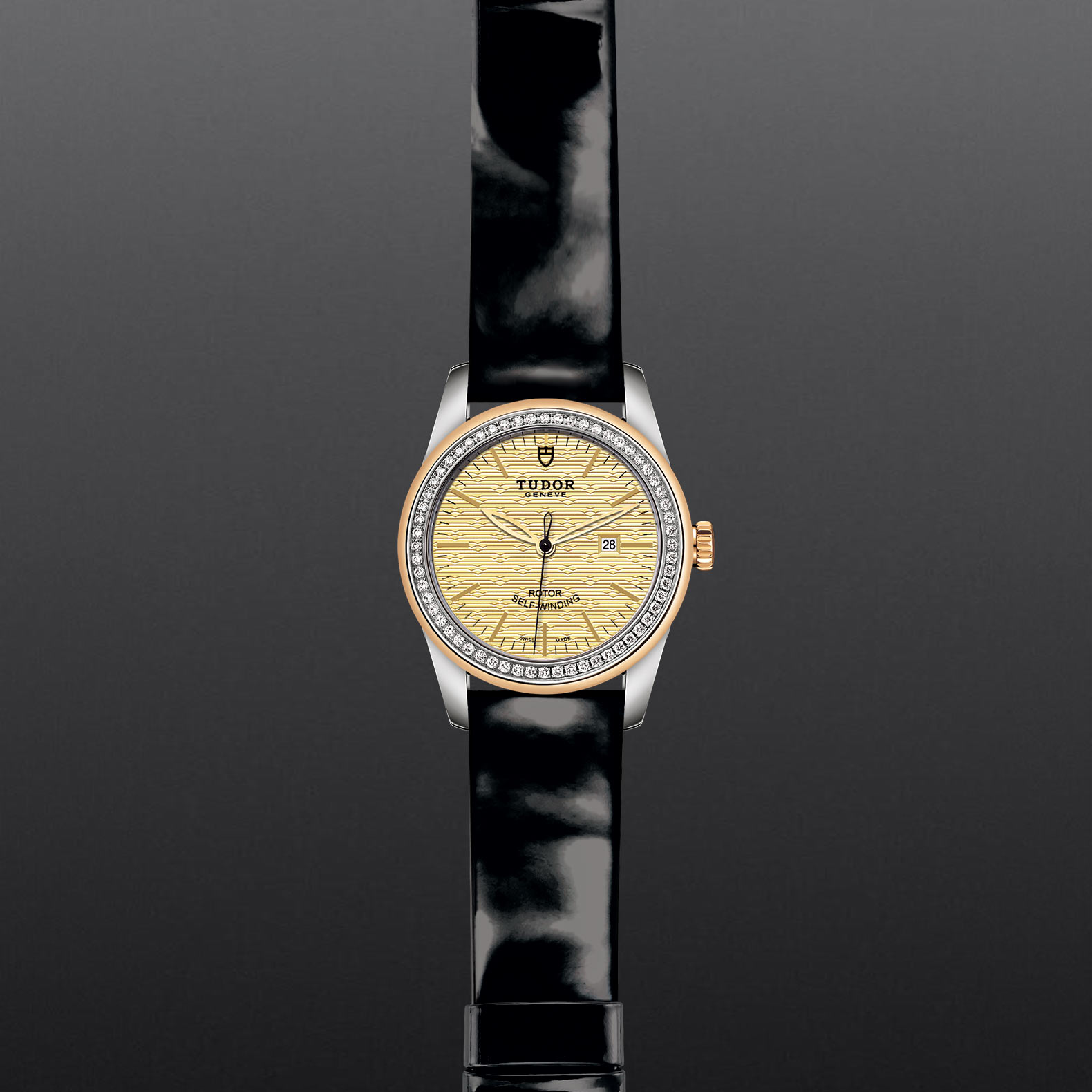 Steel and yellow gold double bezel set with 60 diamonds, with polished finish