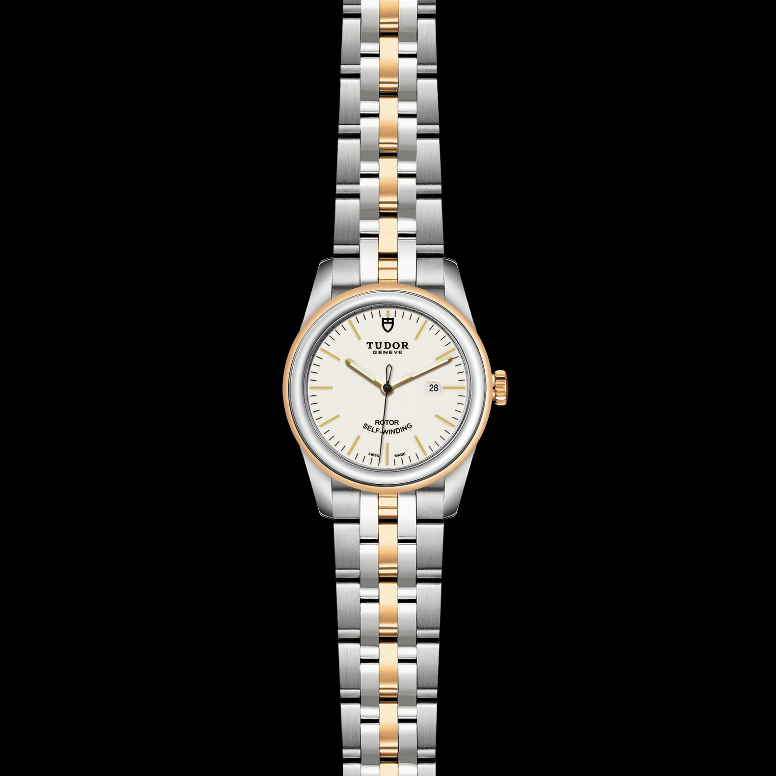 Screw-down winding crown with the TUDOR logo. Steel covered by a 0.1mm 18 ct yellow gold cap