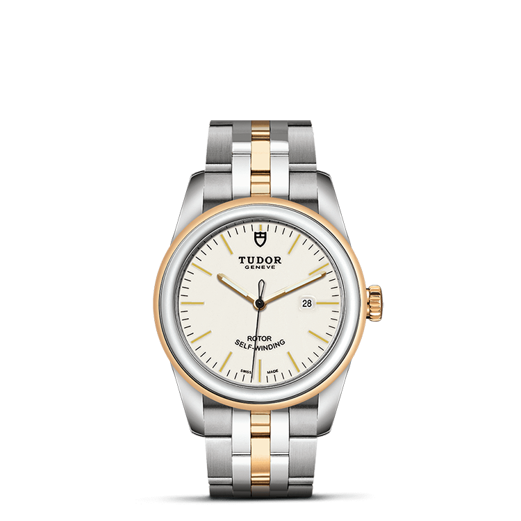 Screw-down winding crown with the TUDOR logo. Steel covered by a 0.1mm 18 ct yellow gold cap